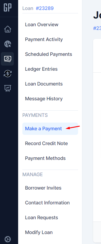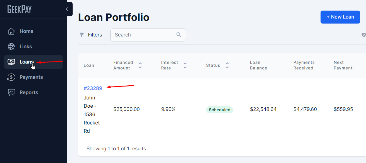 - Go to Loans and select the relevant loan