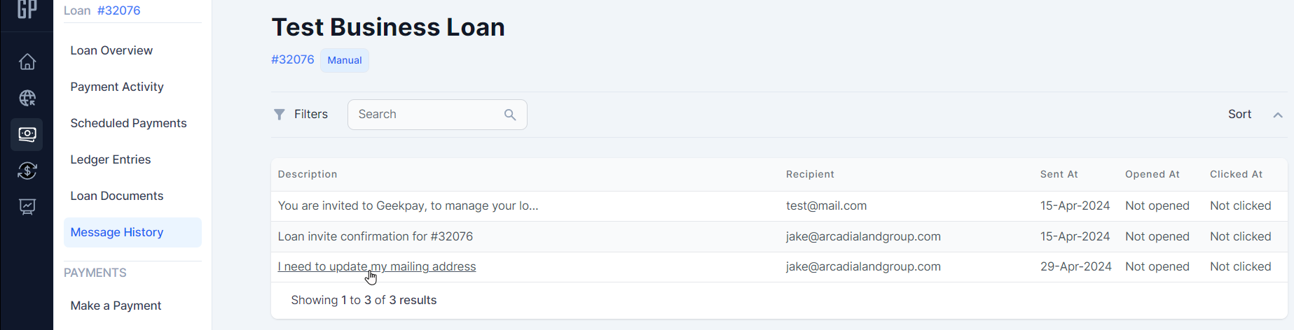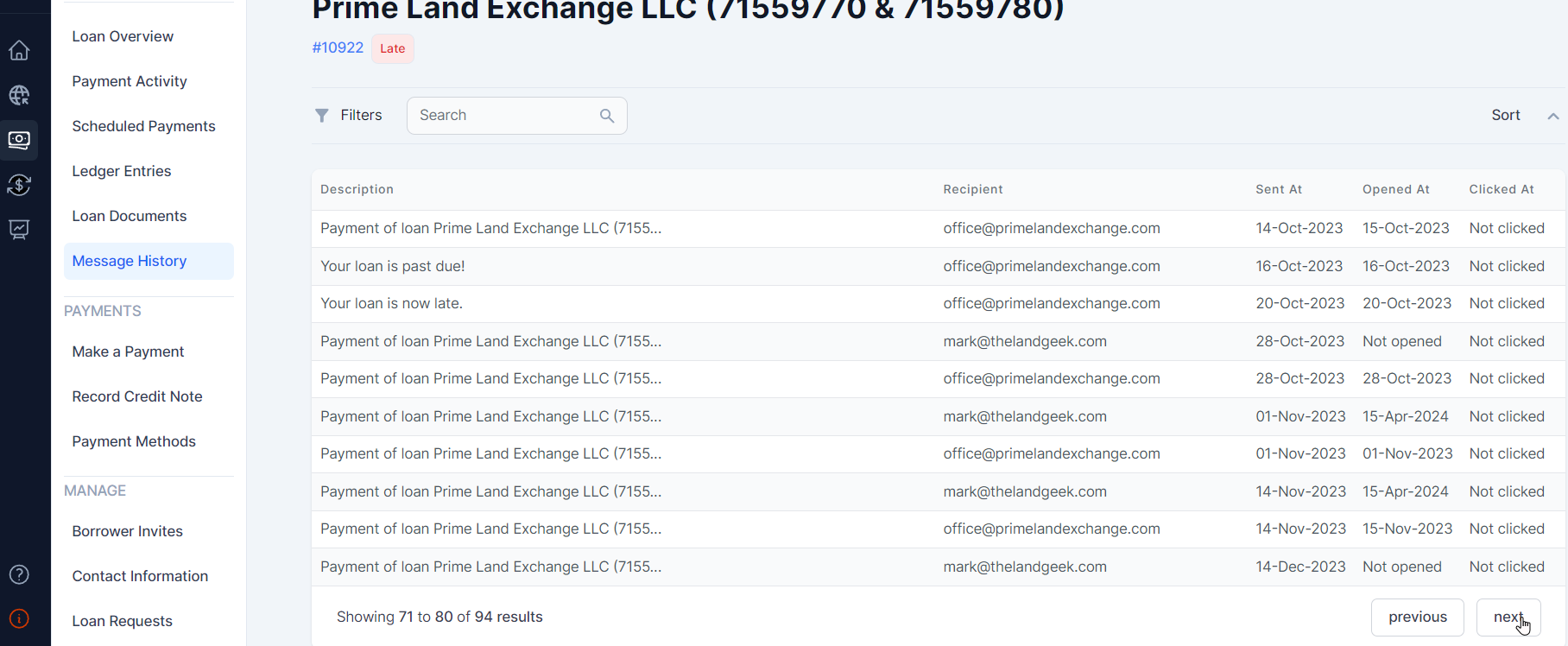 This section shows all notifications and messages ( from Loan requests)