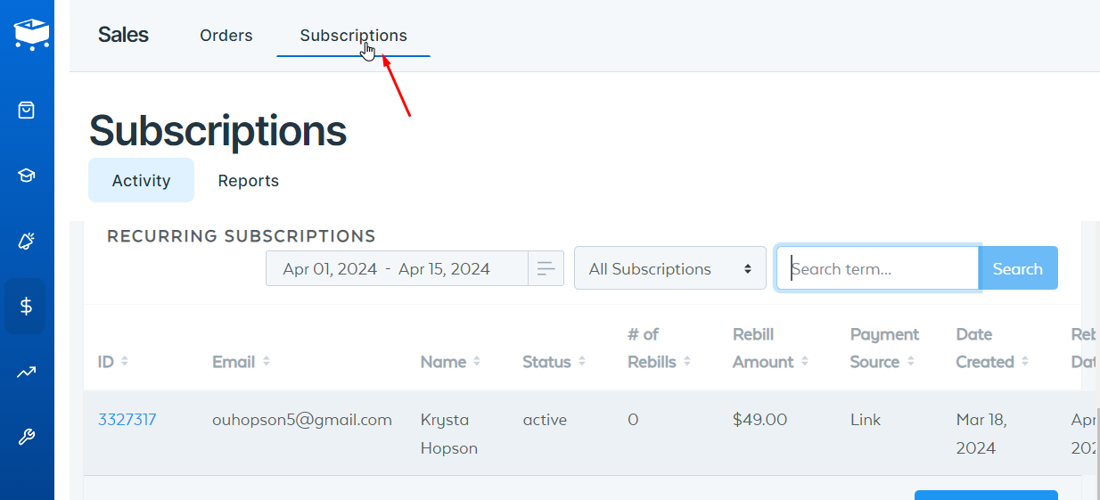 - Log in to https://app.samcart.com/ and go to the “Subscriptions Tab