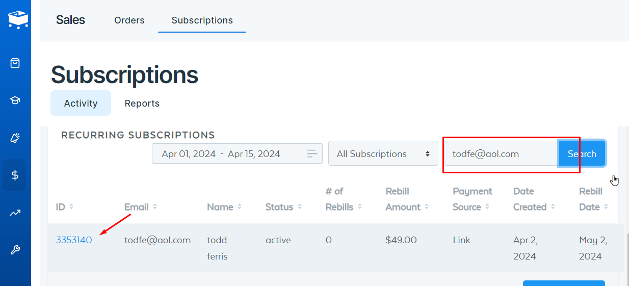 - Search for the Merchant’s subscription