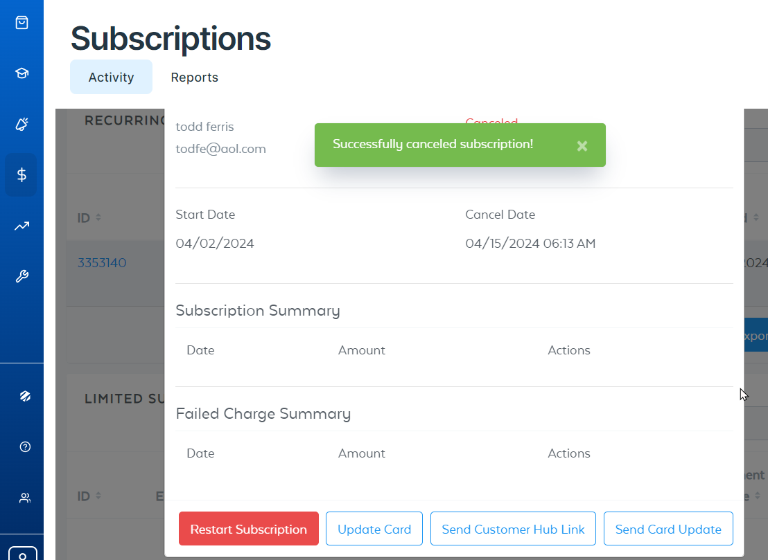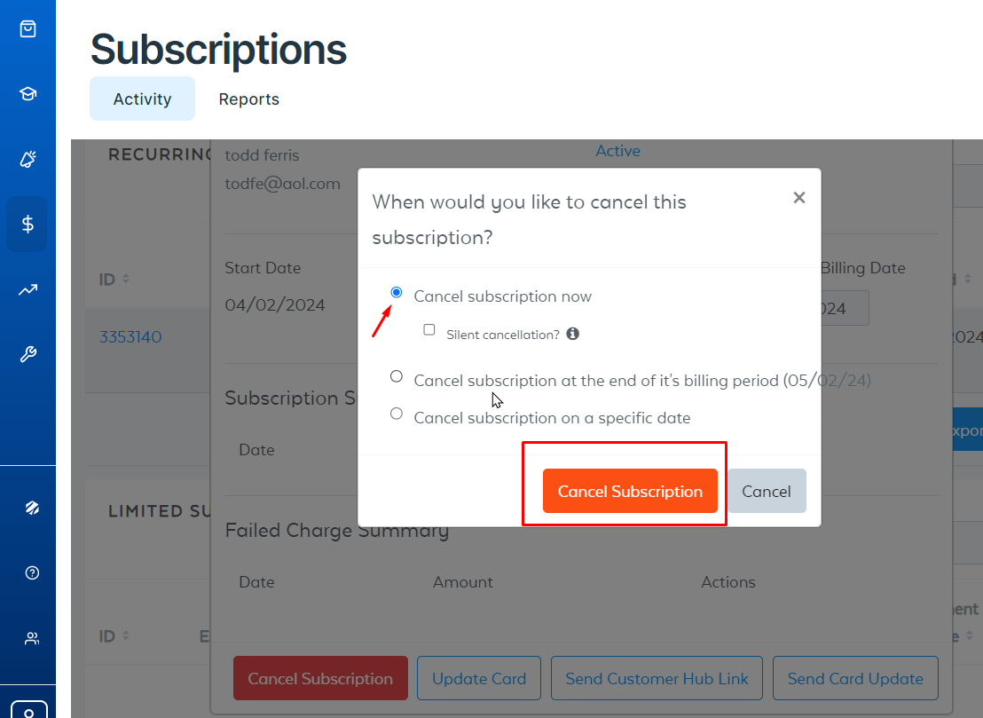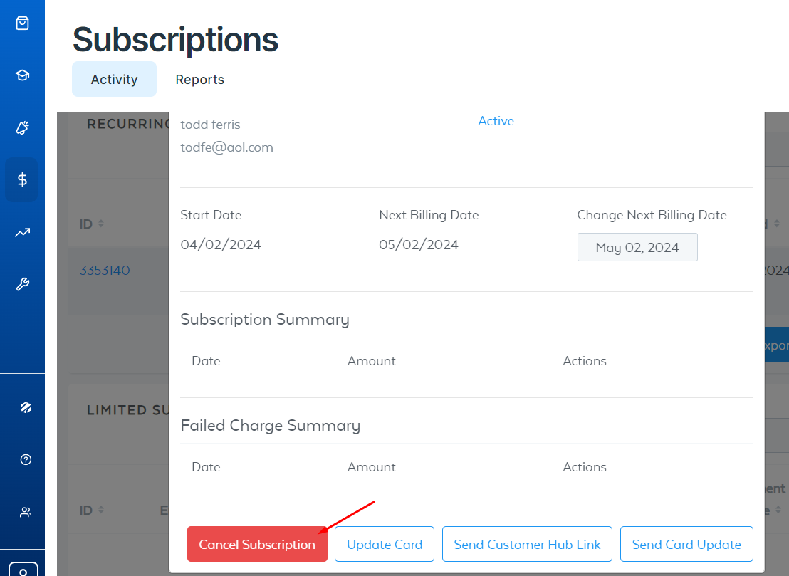 - Click on the “Cancel Subscription” Button
