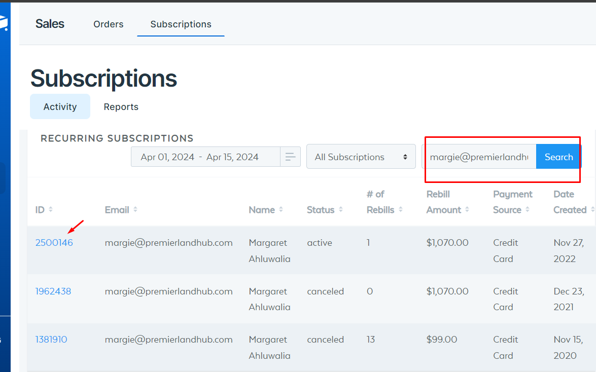 - Log in to https://app.samcart.com/ and go to the “Subscriptions Tab